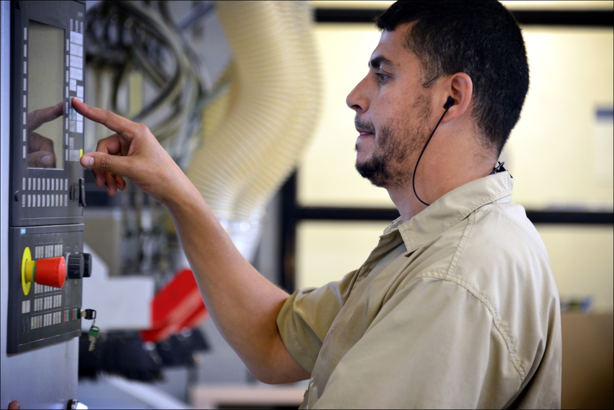 In einem automatisierten Arbeitsgang können wir gehobelte Teile kürzen, die Köpfe fräsen und bohren und die Bohrung mit Dübeln versehen. Natürlich haben wir auch eine Zapfenschneidmaschine, Bohrbänke, Tischfräsen usw., alle gängigen Maschinen sind vorhanden. Das macht Schilte für Sie so interessant.