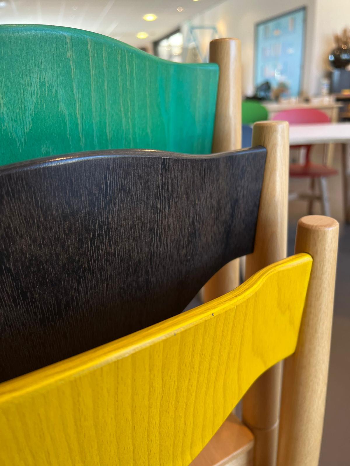 Optional können beide Stühle in verschiedenen Beiz- und Lackfarben geliefert werden.