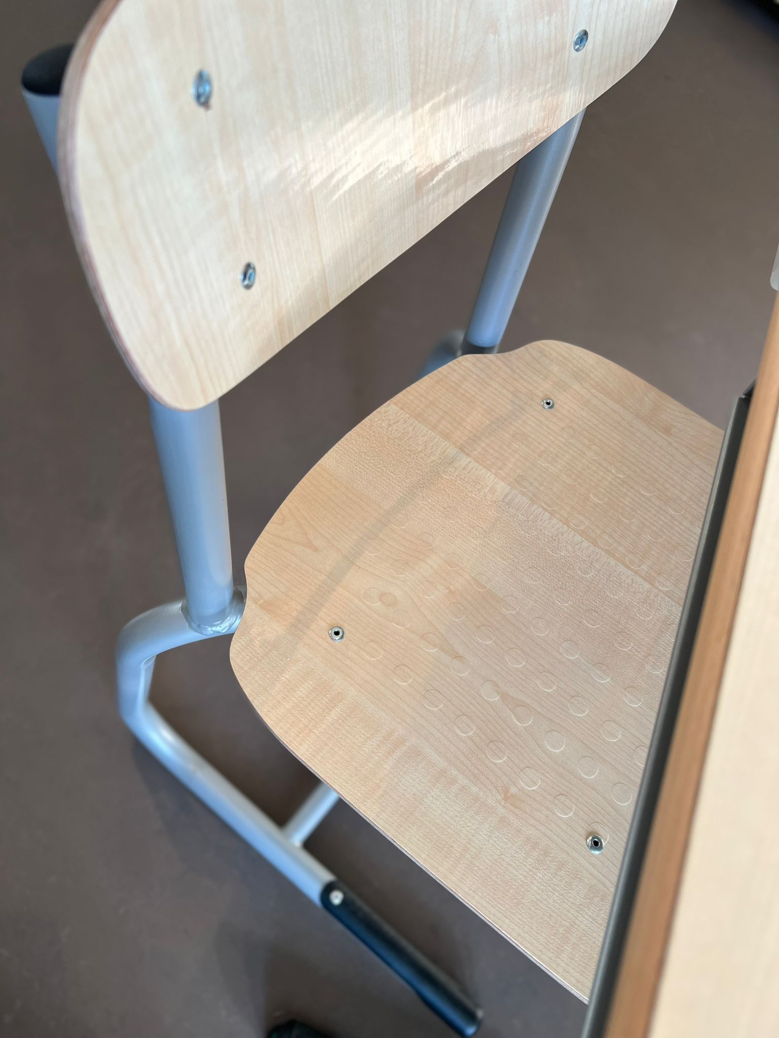 - Stühle, mit Kunststoffschale (in verschiedenen Farben)
