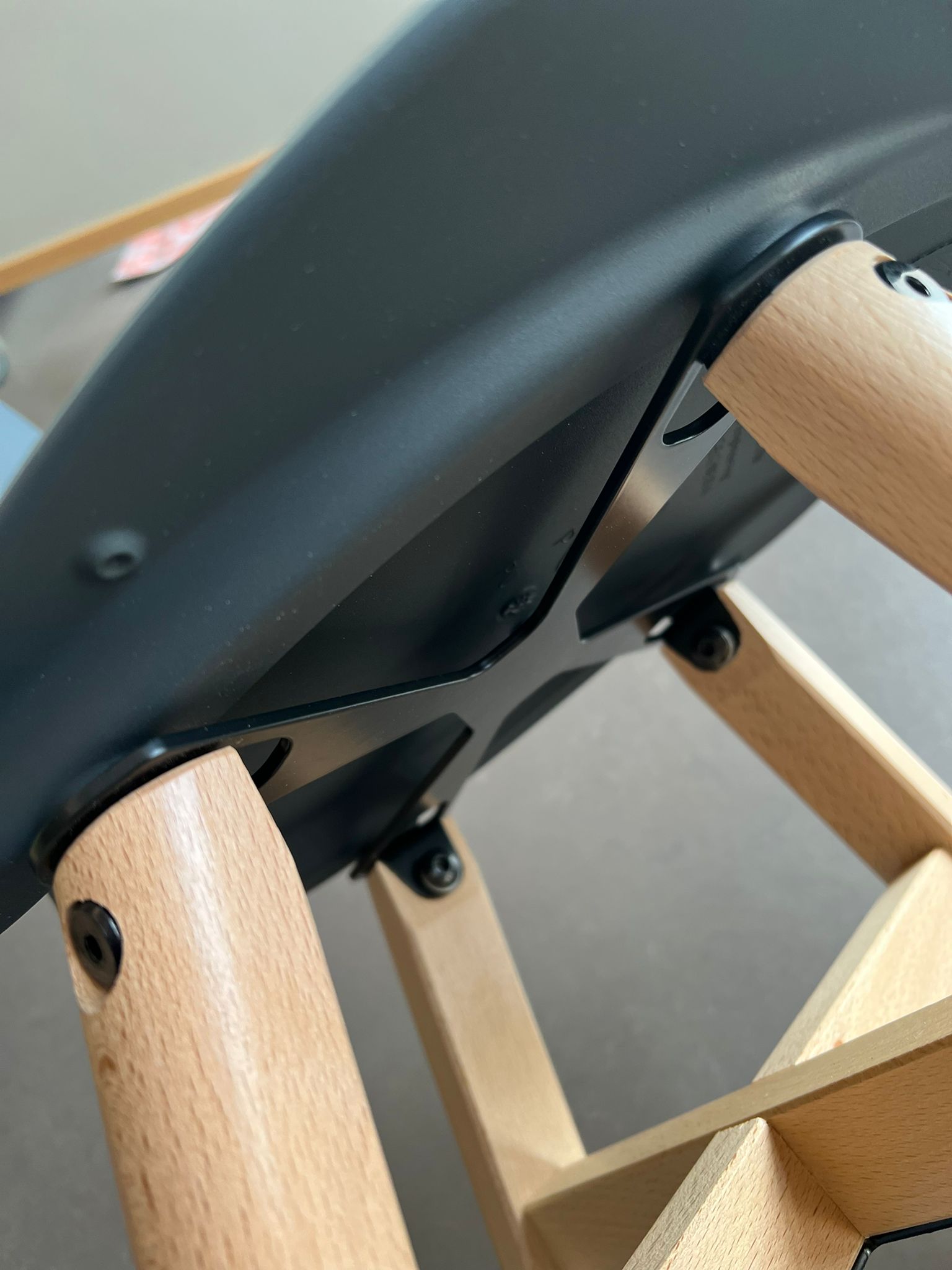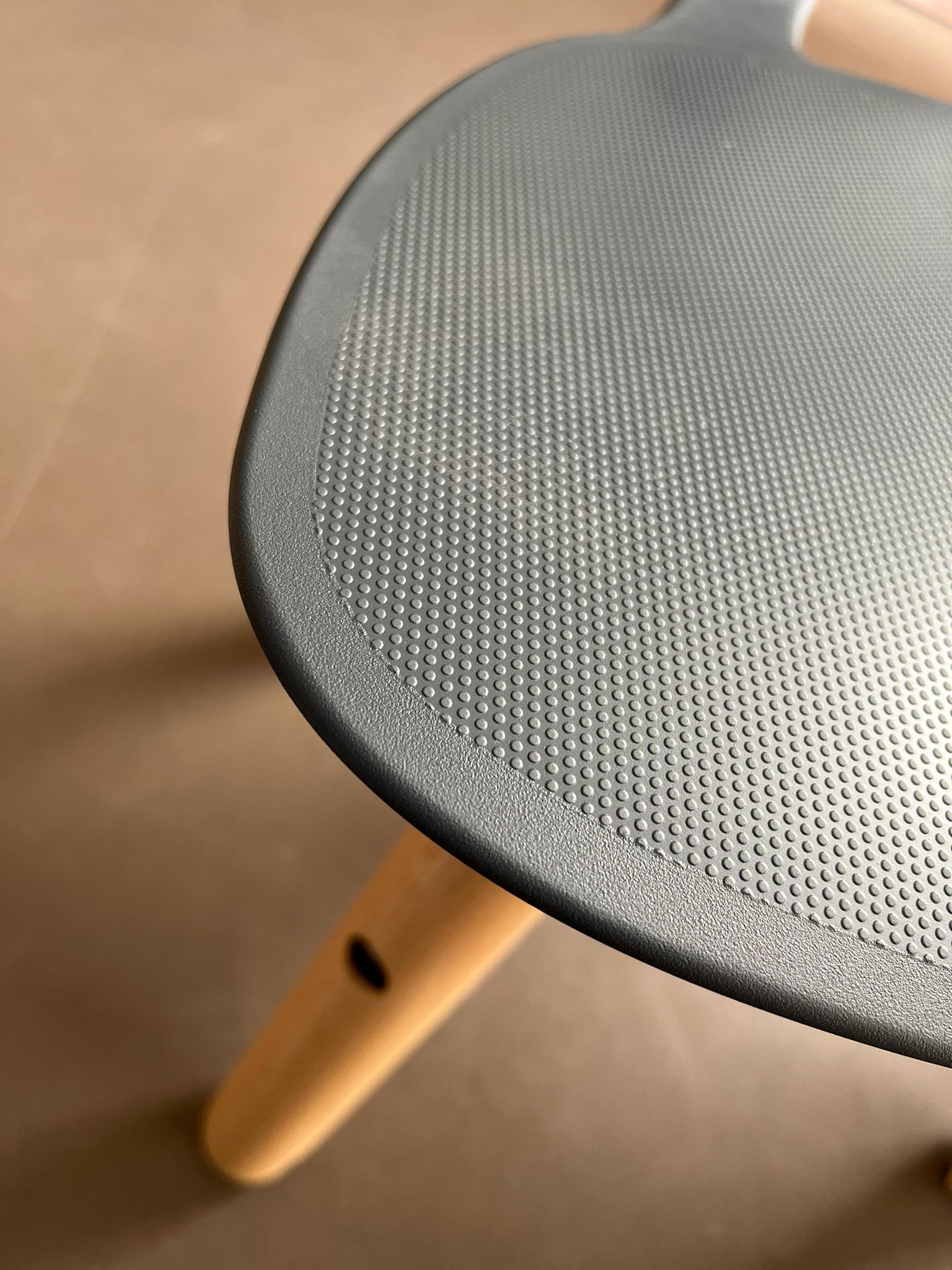 Die Sitzschale besteht aus extrem widerstandsfähigem Kunststoff und ist in verschiedenen Farben erhältlich: rot, schwarz, anthrazit, hellblau, dunkelblau, grün. Sie ist auch in zwei Holzarten, Ahorn und Akazie, und in den Höhen B2 bis F6 erhältlich.