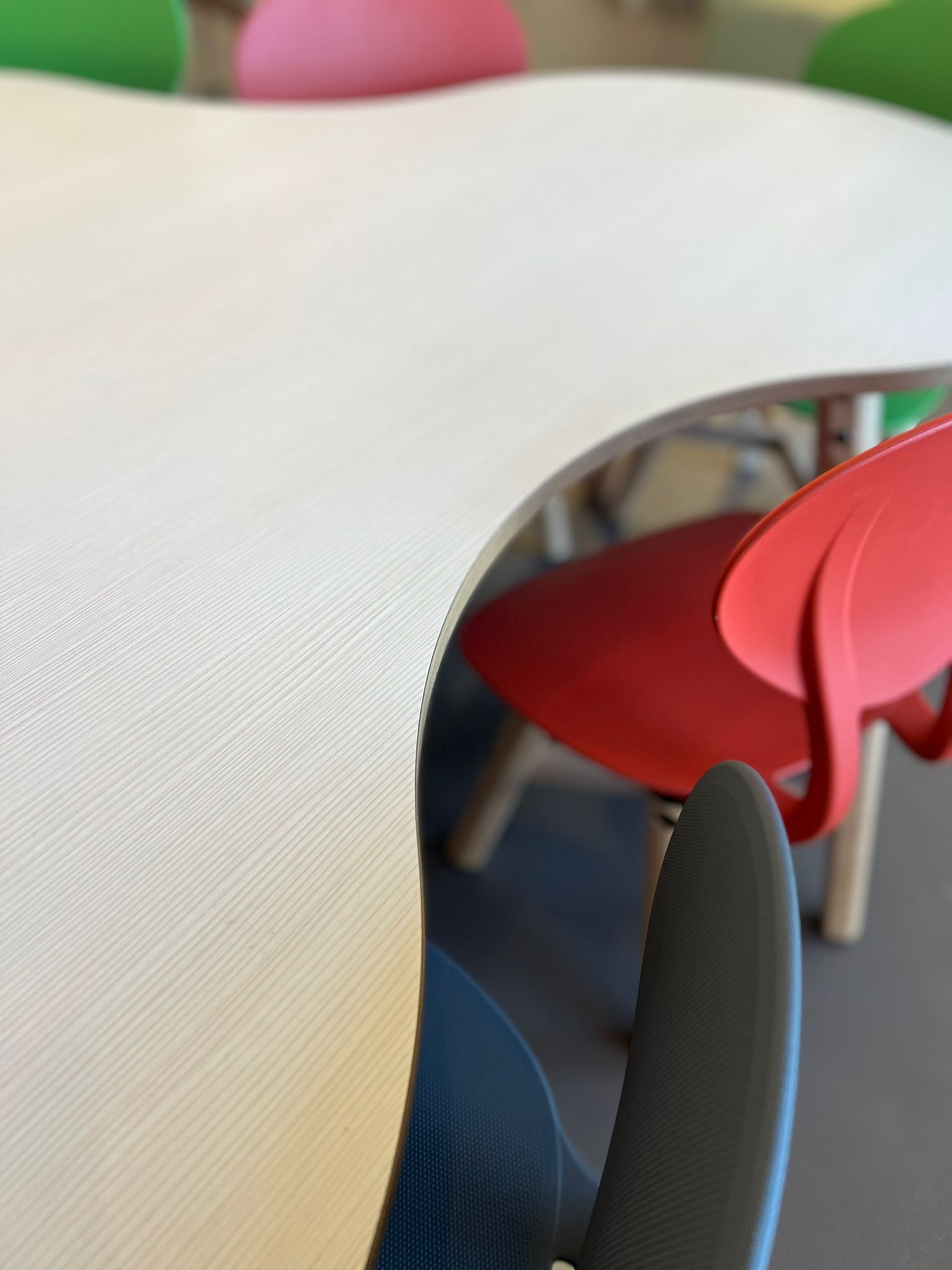 Wir haben eine Vielzahl von Gruppentischen: rechteckig, quadratisch, trapezförmig, rund, halbrund und den Puzzletisch. Alle in verschiedenen Höhen, Formaten und RAL-Farben.