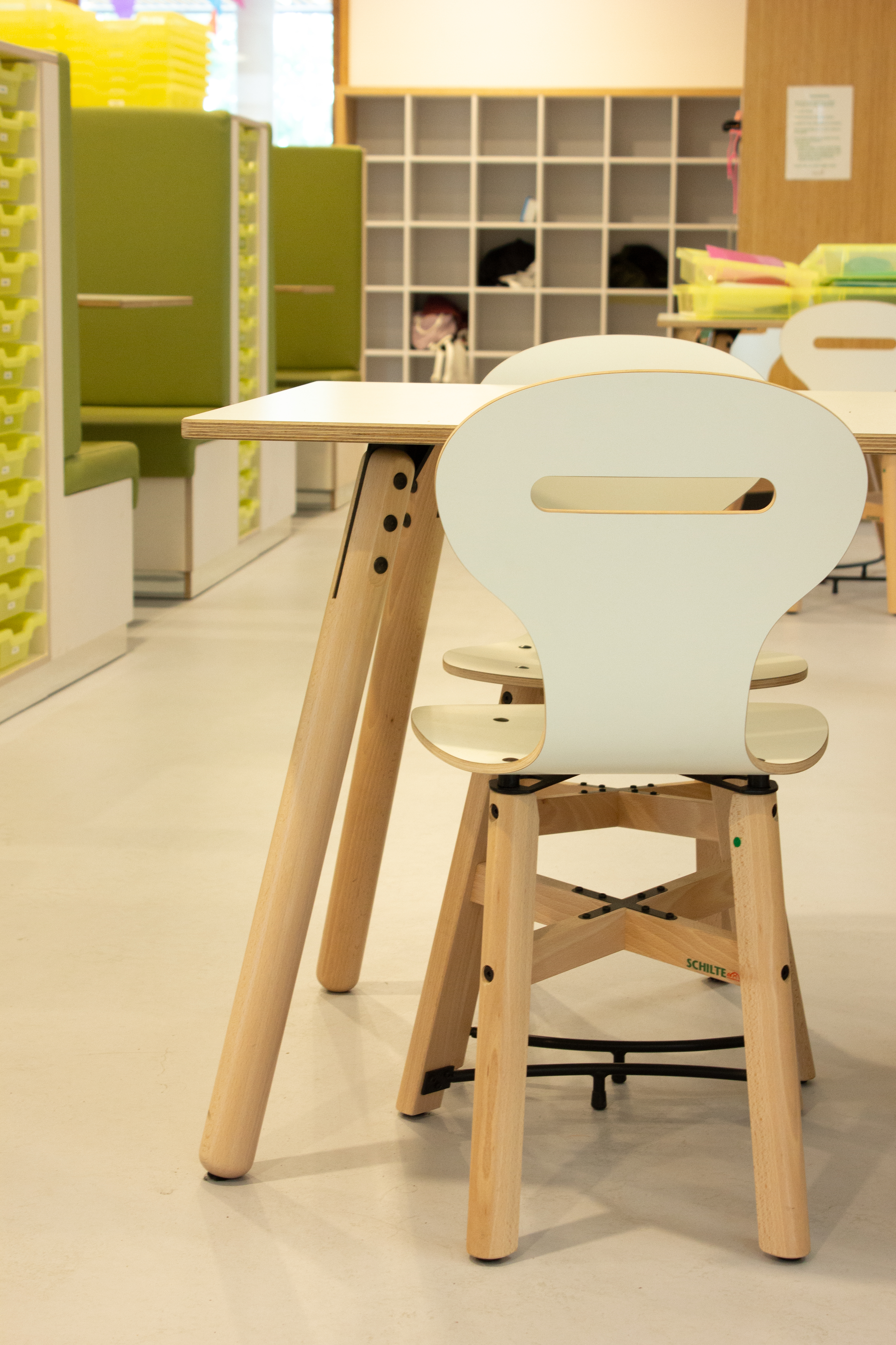 Für den Grundschulbereich bieten wir eine Vielzahl von Schülermöbeln an. Schilte hat außerdem die trendigen Linien Socra und Trati entworfen. Mit seiner straffen Sitzschale und den Holzbeinen bietet der Socra ein modernes Design. In Kombination mit den Trati-Gruppentischen vervollständigt er den Raum. Inspirierende Möbel für Kindergärten, Mittel- und Oberstufenzimmer und Lernbereiche.